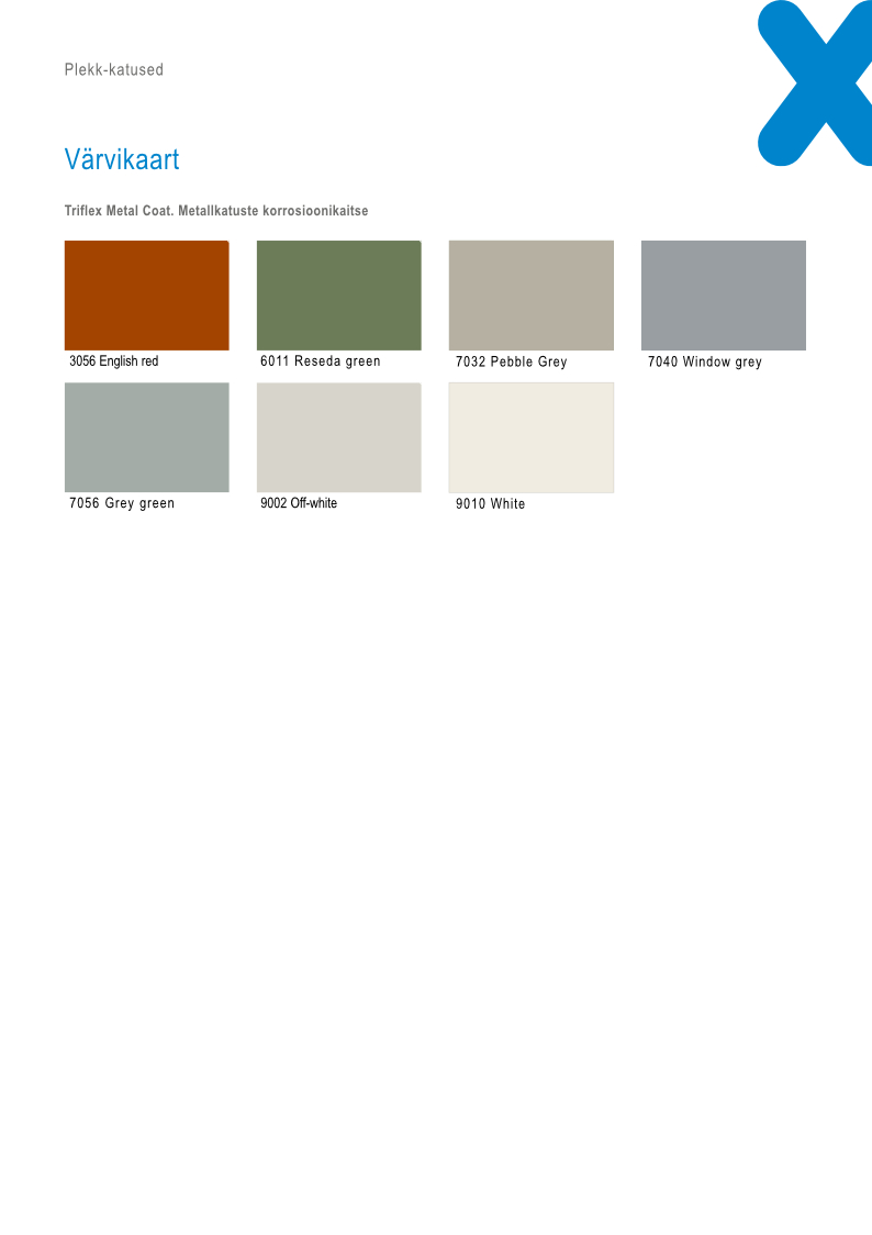 Triflex Metal Coat katuselahendus on sobilik, kui on plaanis ette võtta plekk katuse värvimine ja korrosiooni eest kaitsmine. Plekk katuse paigalduse ja ekspluatatsiooni ajal tekkinud vigastatud kohad hakkavad roostetama ja lühendavad katuse eluiga.